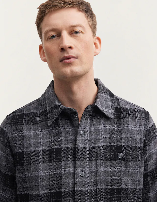タータンチェック柄があしらわれた柔らかい肌触りのオーバーシャツ。