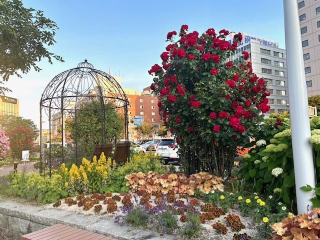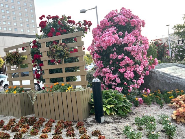到着して駅を出るとお花が🌸🌼がお出迎え普段🚗³₃移動だとなかなか味わえない光景🌸新鮮思わず📷✩*°