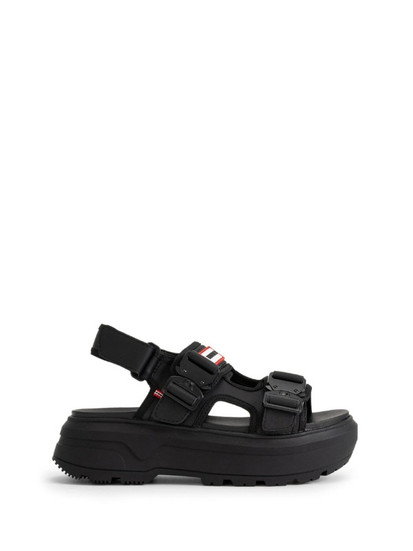 ストラップ部分は取り外し可能で、ミュールスタイルで履くこともできます。チャンキーなアウトソールは軽量で、ソックスと合わせれば、春〜秋にかけて長く履けるのもポイント。ハンターのトリコロールカラータグ付き。