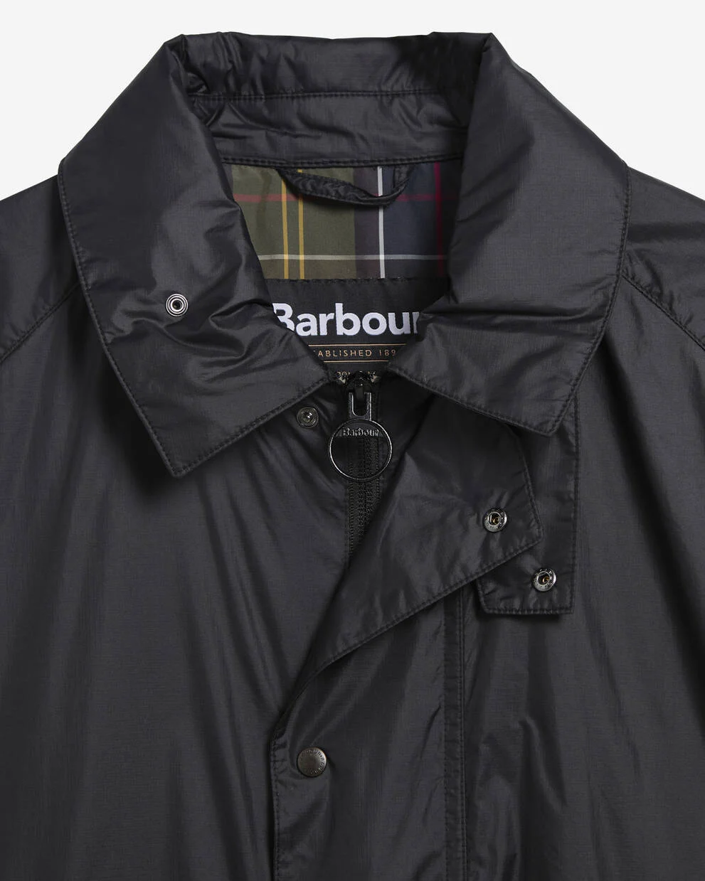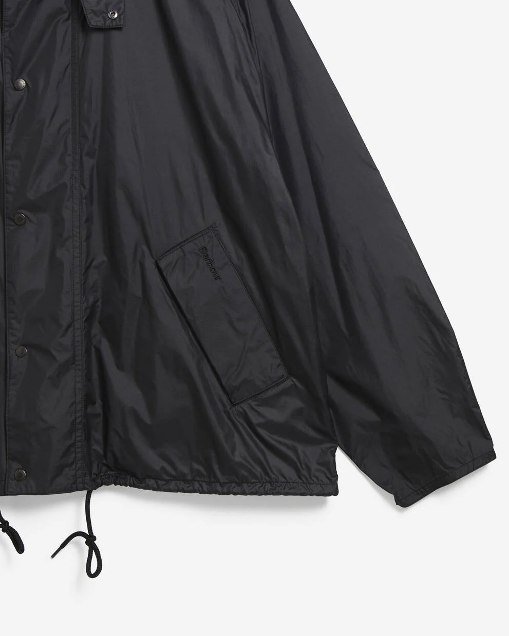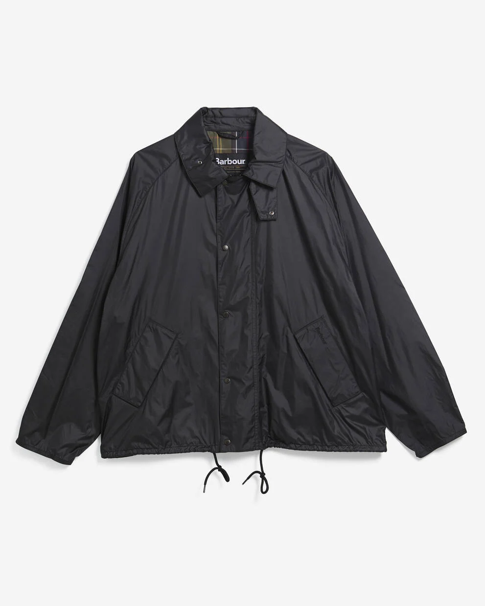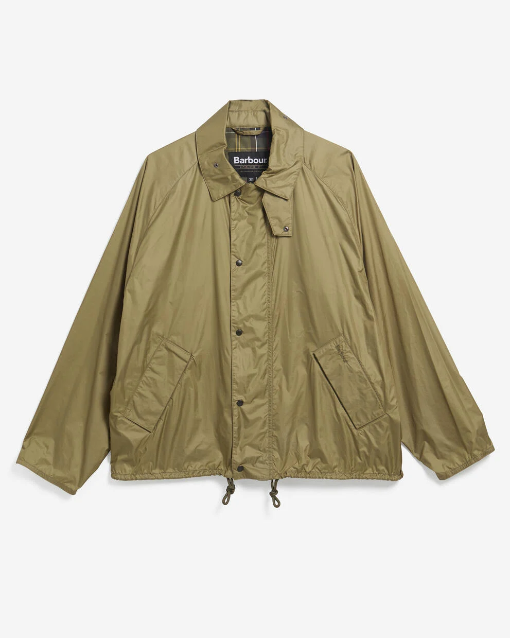 バーバー トランスポート UV シャワープルーフ ジャケットは、変わりやすい天候にも対応できるスタイリッシュで実用的な一着です。UVカット素材を使用し、スタッドボタン付きのジップフロント、リバースウェルトポケット、伸縮性のある袖口、ドローコード付きの裾、内側のタータンチェック柄が特徴です。左ポケットにはバーバーの同系色の刺繍が施され、快適さと機能性を兼ね備えたオーバーサイズジャケットです。