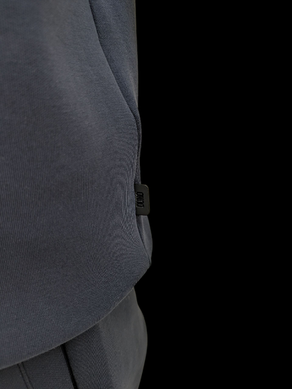 DUNO(デュノ)のスウェット。ベーシックなプルオーバータイプですが、肩周りに生地を切り替えて、背面にダーツを入れるなど、パターンにも拘っている一着です。リラックスシルエットですが、素材の特性もあり都会的な装いに仕上がります。