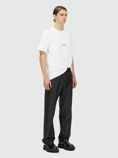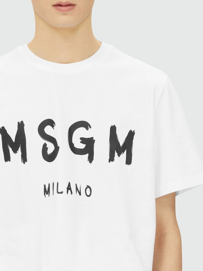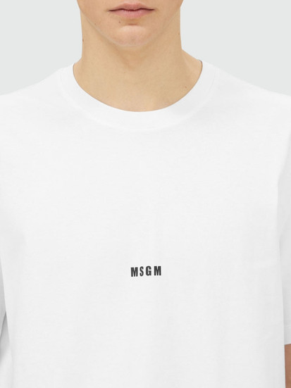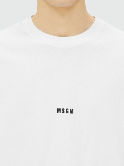ラウンドネックのコットンTシャツ。半袖の無地です。フロントにMSGMのマイクロロゴプリントが施されています。フィット感はレギュラーです。