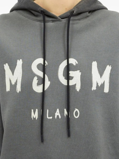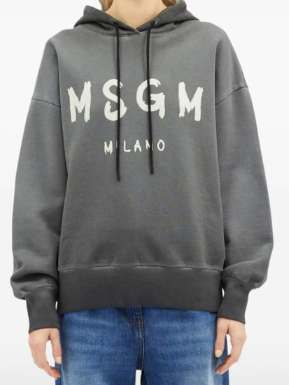 プリントニット生地で作られた、MSGM コレクションのフード付きスウェットシャツ。着心地抜群のコットン素材を使用したモデル。