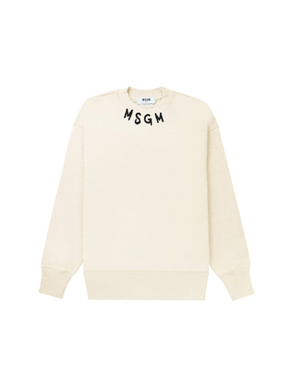 MSGMの定番ブラッシュロゴ(筆ロゴ)が襟元に配されたユニークなスウェットシャツ。リブエッジのクルーネックにドロップショルダーを配したリラックス感のあるシェイプ。ワードローブの定番をコンテンポラリーにアップデートする1枚。