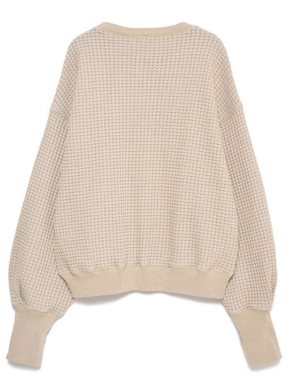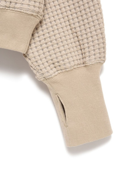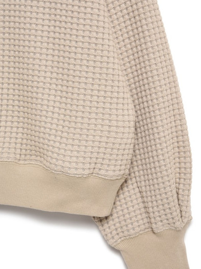 ・表面をコットン、裏面に伸縮性のあるポリエステルを使用することで立体的なワッフルの組織感を表現。